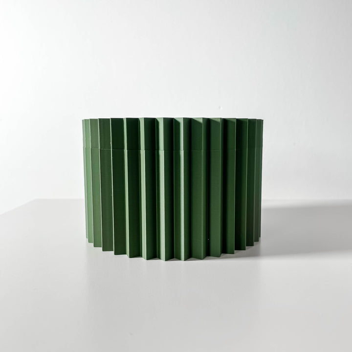 The ARIS container exudes modern flair with its clean vertical lines and ribbed texture, providing a minimalist yet stylish organization solution. The cylindrical shape is both functional and decorative, available in a range of colors to suit any modern home or office decor. With the ARIS container, you can achieve an elegant and streamlined way to organize your things while adding an aesthetic touch to your space.