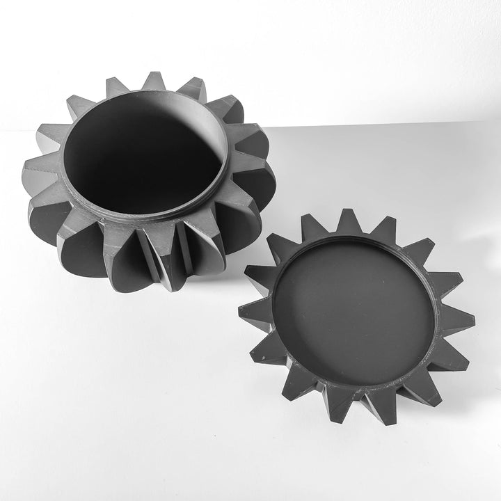 KIRE boasts an intricate geometric design with angled contours that play with light and shadow, creating an eye-catching piece that is both a storage solution and a work of art. The contrasting textures make it an ideal accent piece for spaces that celebrate bold patterns.