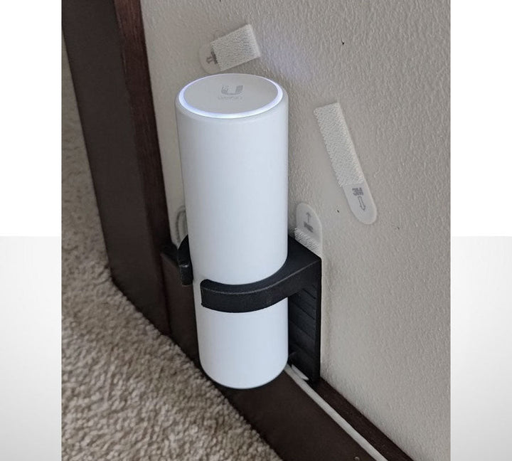 Practical wall mounting made to get Ubiquiti's UniFi U6 Mesh AP upright and close to the wall using removable 3M Command Strips. It can also be used with Command™ picture hangers.