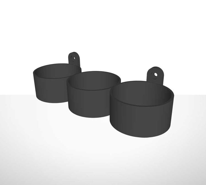 Single wall bracket for your spray cans, so you can keep your workshop organized and create a good overview of your spray paint. Holds 3 cans per holder.