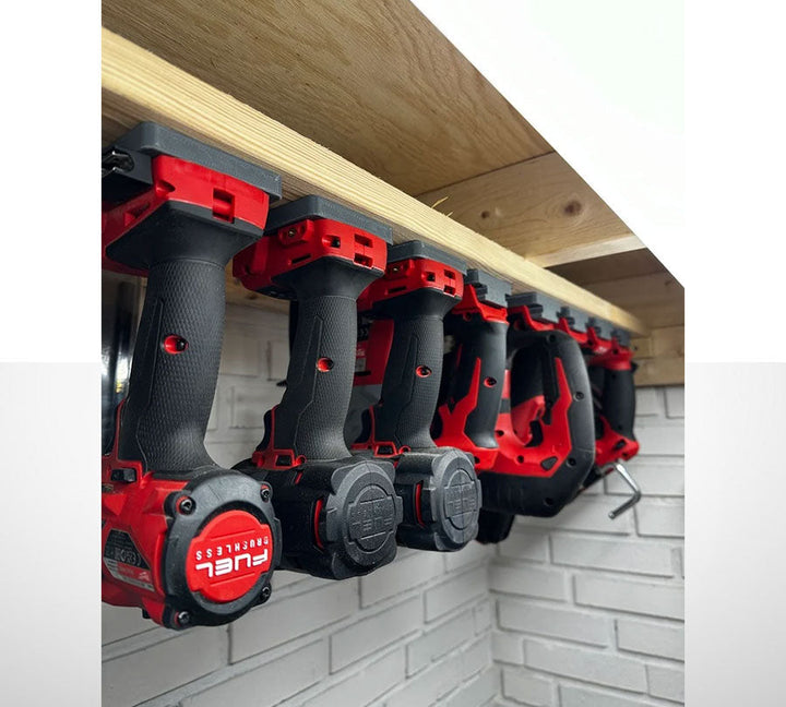 The smart and robust wall bracket for Milwaukee M18 tools allows you to organize your workshop by hanging your tools on the wall or ceiling.